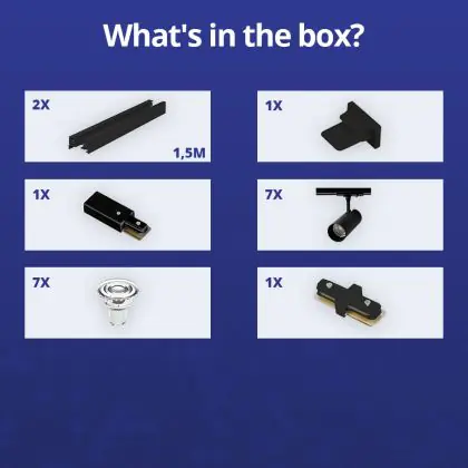 Beschreibung Bright Choice Komplettset 1-Phasen Rail 3 Meter Schwarz | incl. 7x Spot + GU10 2700K 3W Dimmbar + Abschlusskappe, Stromanschluss und I-Verbinder