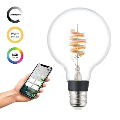 Die Eglo Connect.Z Smart LED Globe E27 Fadenlampe Klar 4.9W 400lm - 830 Warmweiß + RGB | Dimmbar - Ersatz Für 40W ist eine effiziente E27 LED-Lampe mit Retrodesign und der perfekte Ersatz für Ihre konventionellen 40W Lampen mit E27. Zudem strahlt sie Licht in der Farbtemperatur 3000K - Warmweiß + RGB aus und punktet durch eine lange Lebensdauer.