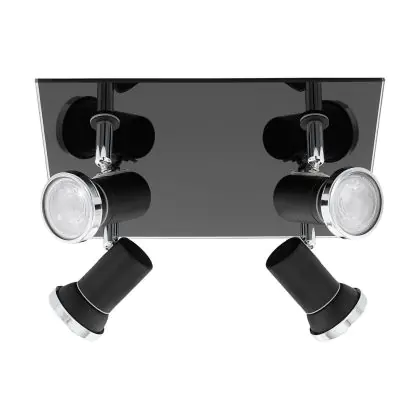 Beschreibung Eglo Deckenleuchte Tamara 1 Stahl Schwarz Chrom 4x2.8W 4x250lm - 830 Warmweiß | IP44 - Inkl. 4x GU10