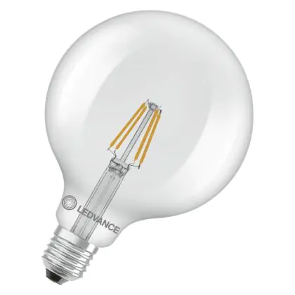 Die Ledvance Classic LED Globe LED E27 Globe Fadenlampe Klar 3.4W 470lm - 827 Extra Warmweiß | Ersatz Für 40W ist eine effiziente E27 LED-Lampe mit Retrodesign und der perfekte Ersatz für Ihre konventionellen 40W Lampen mit E27. Zudem strahlt sie Licht in der Farbtemperatur aus und punktet durch eine lange Lebensdauer.