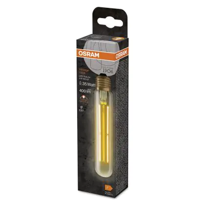 Die Ledvance Vintage 1906 LED E27 Röhre Gold 4W 400lm - 820 Extra Warmweiß | Ersatz für 35W ist eine effiziente E27 LED-Lampe mit Retrodesign und der perfekte Ersatz für Ihre konventionellen 35W Lampen mit E27. Zudem strahlt sie Licht in der Farbtemperatur 2000K - Extra Warmweiß aus und punktet durch eine lange Lebensdauer.
