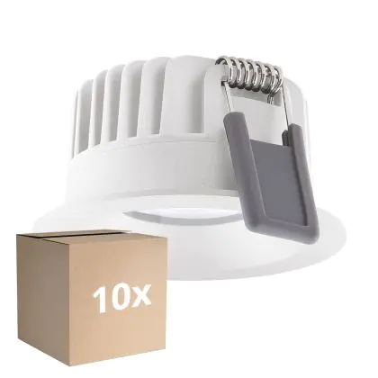 Der Mehrfachpackung 10x Ledvance LED SPOT FIX Aluminium 8W 680lm 36D - 930 Warmweiß | Ausschnitt 68mm - IP44 - Höchste Farbwiedergabe - Dimmbar ist ein LED-Einbaustrahler, welcher Licht in der Farbtemperatur ausstrahlt und durch eine lange Lebensdauer punktet. Die Einbauleuchte ersetzt konventionelle Halogenstrahler.