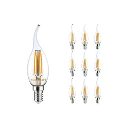 Mehrfachpackung 10x Noxion Lucent LED E14 Gebogen-tip Kerze Fadenlampe Klar 4.5W 470lm - 827 Extra Warmweiß | Dimmbar - Ersatz für 40W