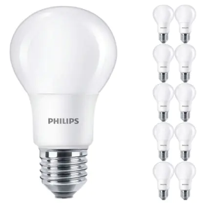 Die Mehrfachpackung 10x Philips Corepro LED Glühbirne E27 Birne Matt 5W 470lm - 930 Warmweiß | Höchste Farbwiedergabe - Ersatz für 40W ist eine effiziente E27 LED-Lampe und der perfekte Ersatz für Ihre konventionellen 40W Lampen mit E27-Sockel. Zudem strahlt sie Licht in der Farbtemperatur 3000K - Warmweiß aus und punktet durch eine lange Lebensdauer.