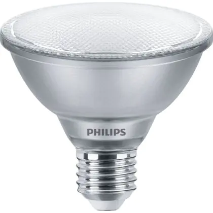 Der Mehrfachpackung 6x Philips Master Value LED Glühbirne Reflektor E27 PAR30 9.5W 760lm 25D - 930 Warmweiß | Höchste Farbwiedergabe - Dimmbar - Ersatz Für 75W ist ein leistungsstarker LED-Strahler mit E27-Sockel. Er kommt mit einer hohen Lebensdauer von 25000 Stunden daher und spart Ihnen somit nicht nur Energie-, sondern auch Austausch- und Wartungskosten. Im Preis ist zudem eine All-In-Garantie von 5 Jahre enthalten.