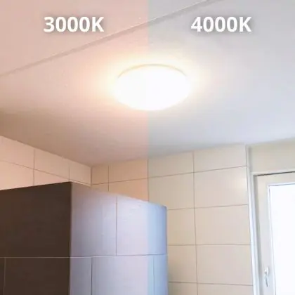 Die LED-Feuchtraumleuchte kommt mit der Farbtemperatur daher. Als Faustregel gilt: Je niedriger der Kelvinwert, desto gemütlicher wirkt das Licht.